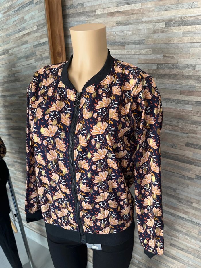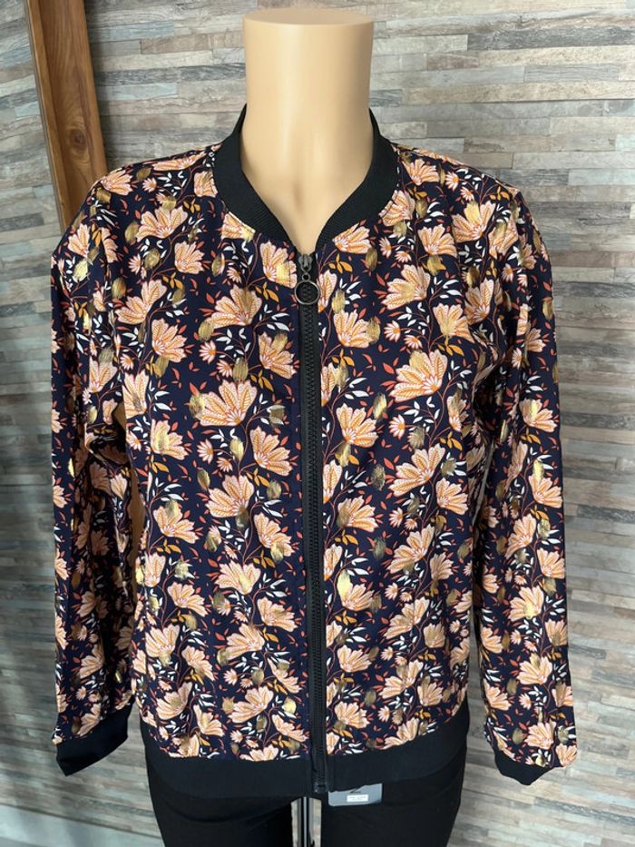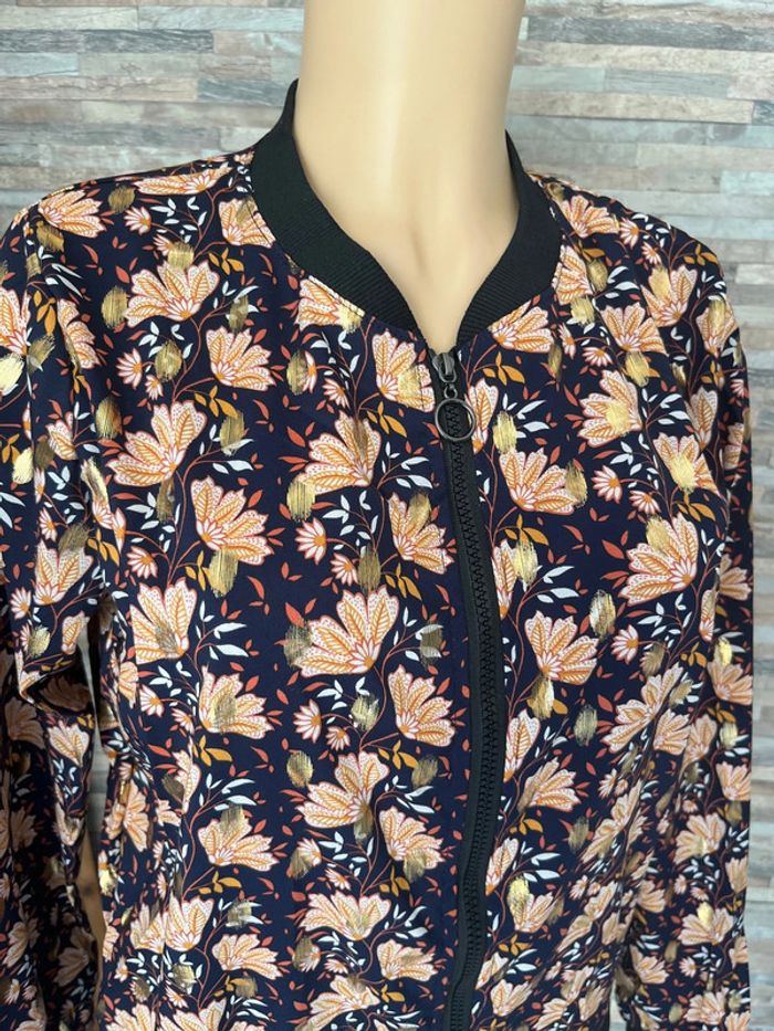 Veste bomber bleu marine à fleurs - photo numéro 2