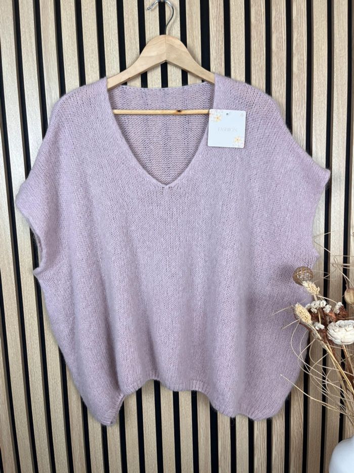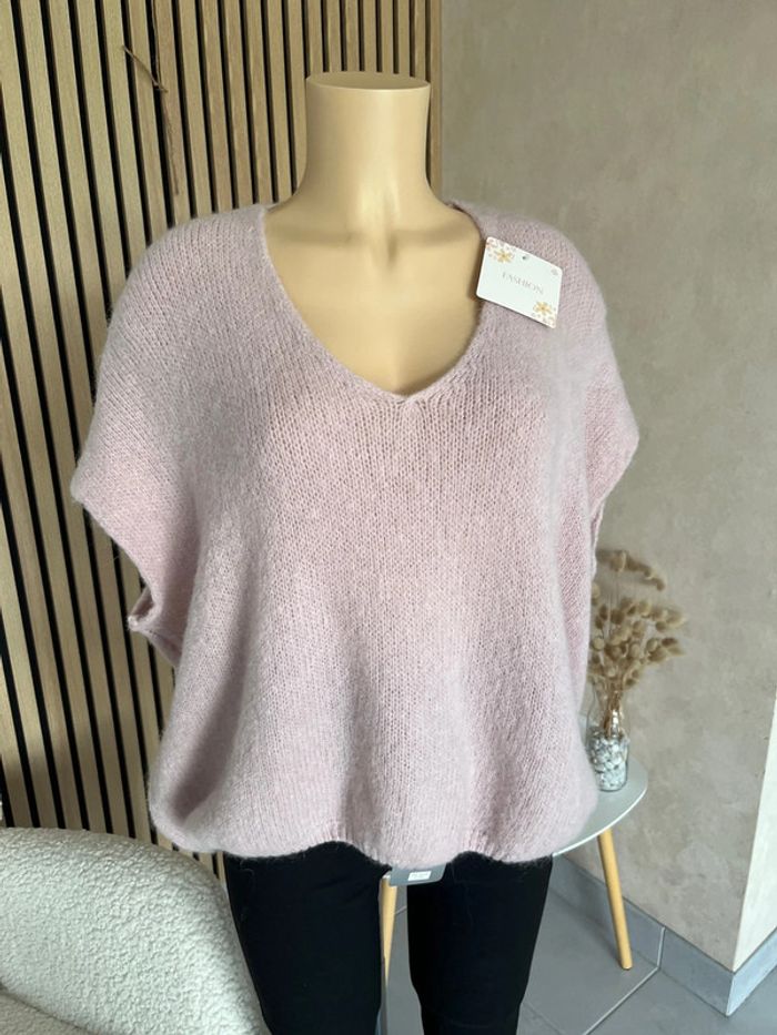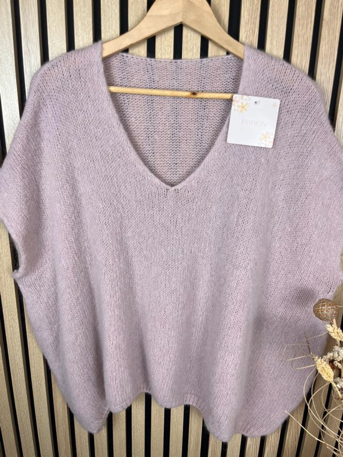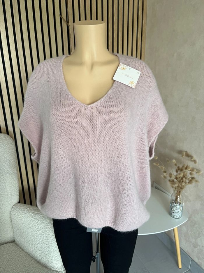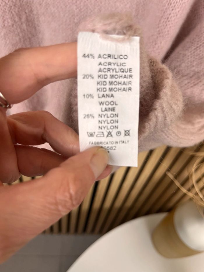 Pull rose poudré mohair et laine