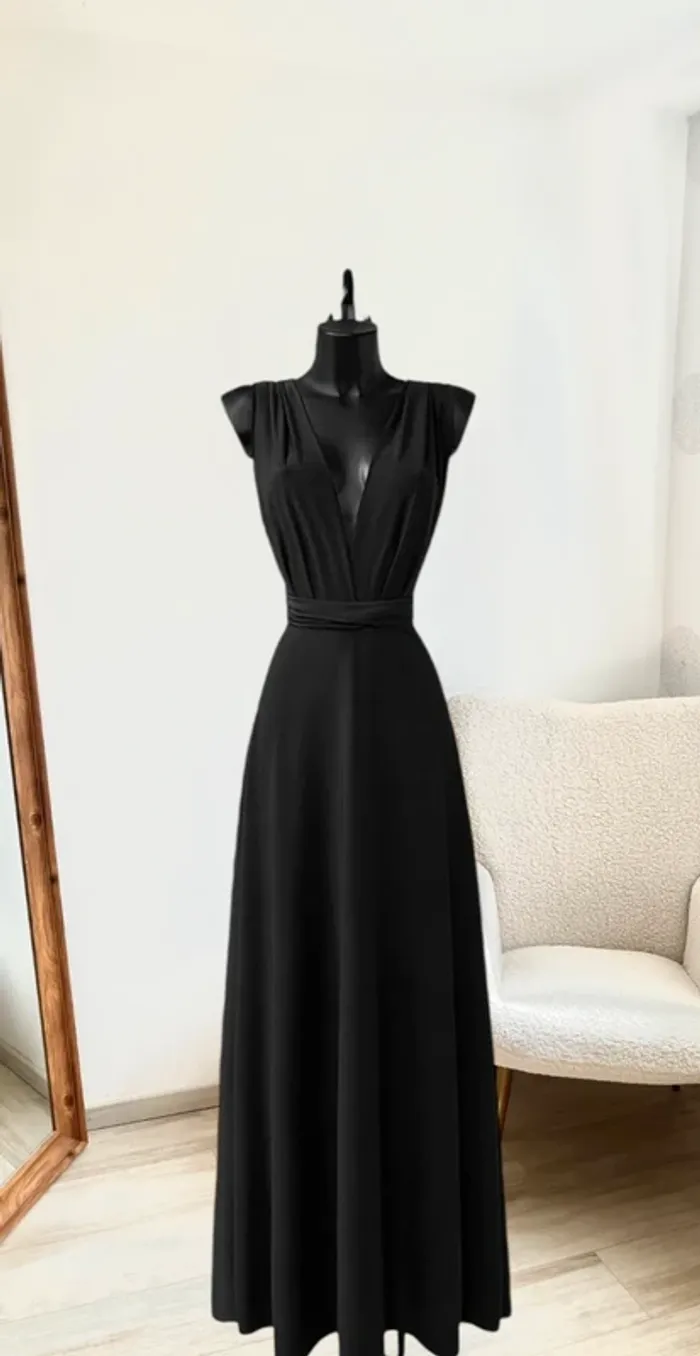 Sublime robe longue couleur noir dos nu positions multiples