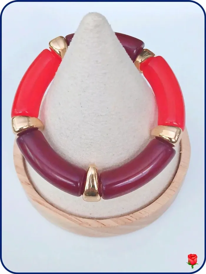Bracelet tube segments rouges et bordeaux – look graphique chic - photo numéro 1