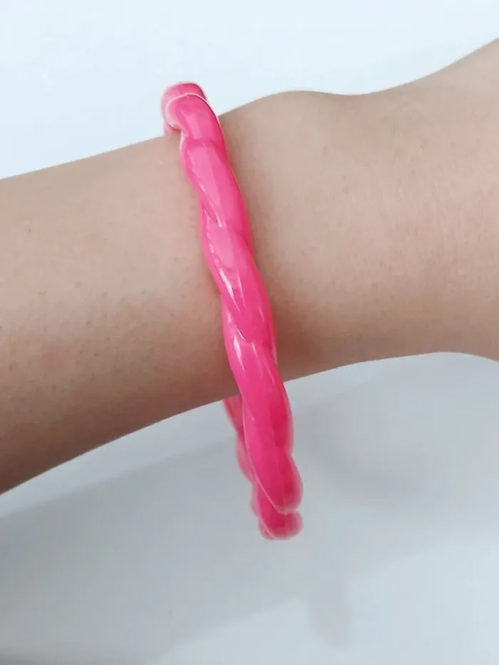 Bracelet jonc torsadé en acrylique rose fushia – Bijou tendance léger et élégant