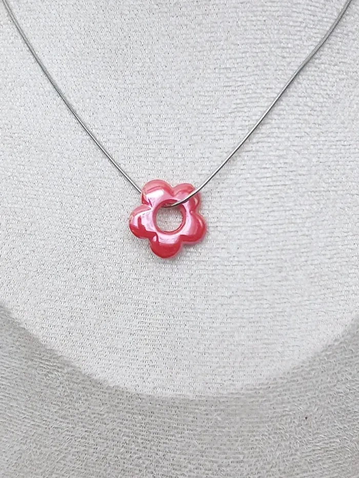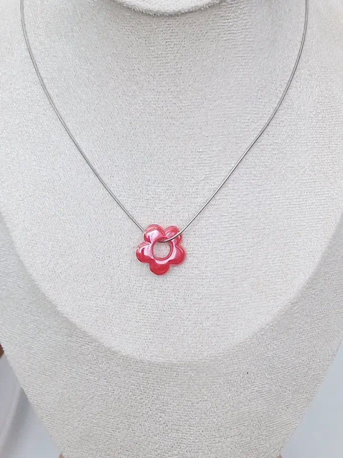 Collier fin avec pampille fleur rouge – Bijou délicat et tendance - photo numéro 1