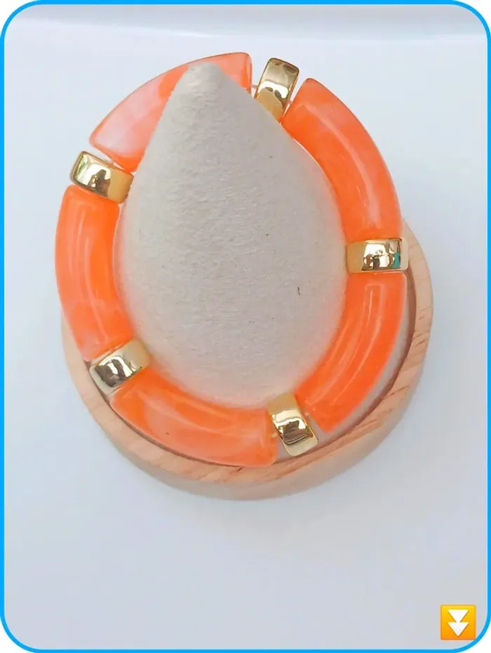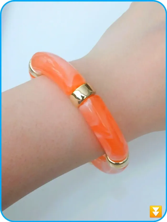 Bracelet tubes en résine orange et doré tendance coloré été - photo numéro 2