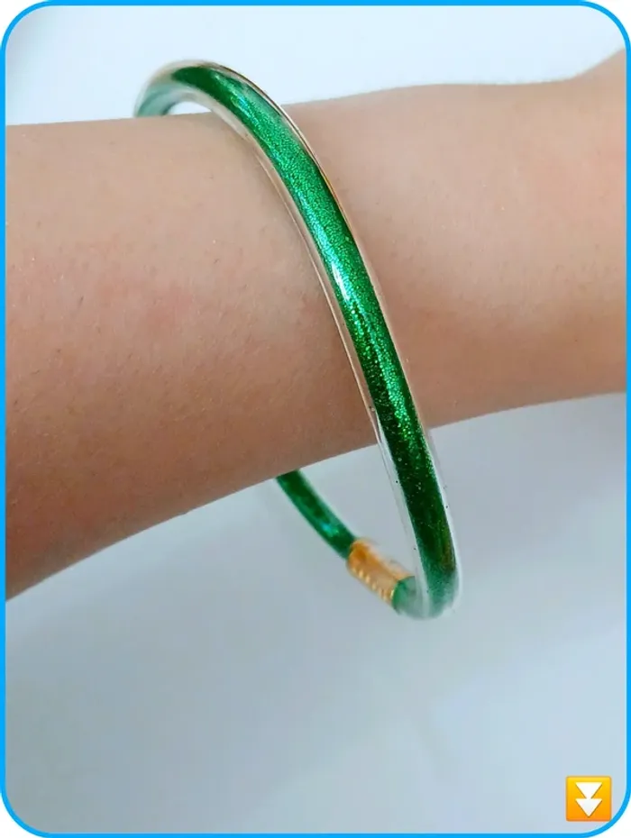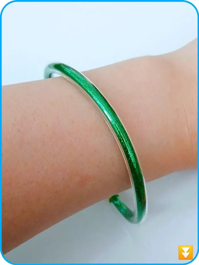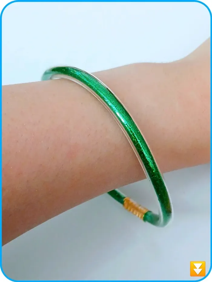 Bracelet jonc souple vert pailleté – style bracelet bouddhiste