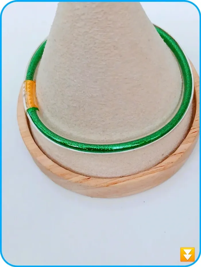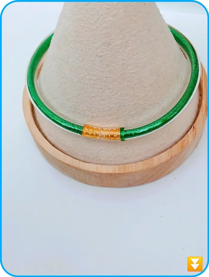 Bracelet jonc souple vert pailleté – style bracelet bouddhiste - photo numéro 1