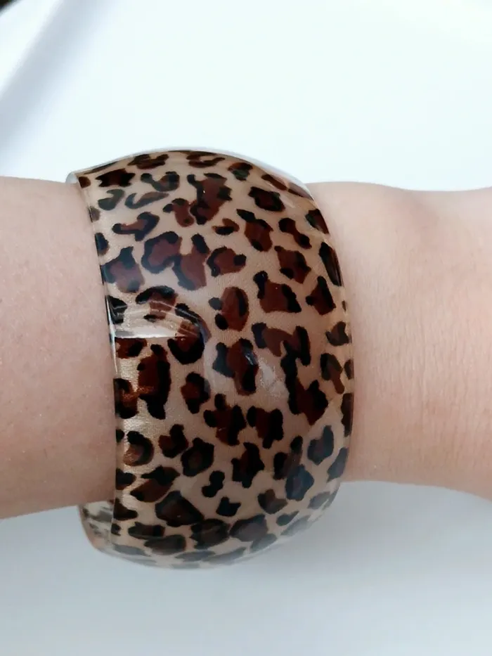 Bracelet manchette résine imprimé léopard – style bold chic - photo numéro 1