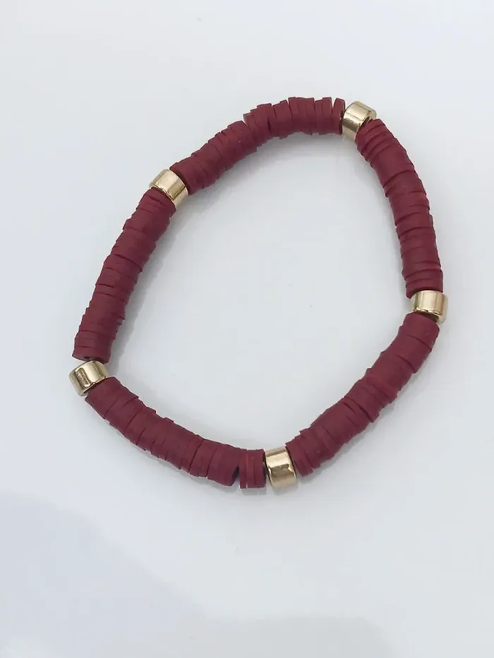 Bracelet perles Heishi bordeaux et doré – Tendance bohème coloré été