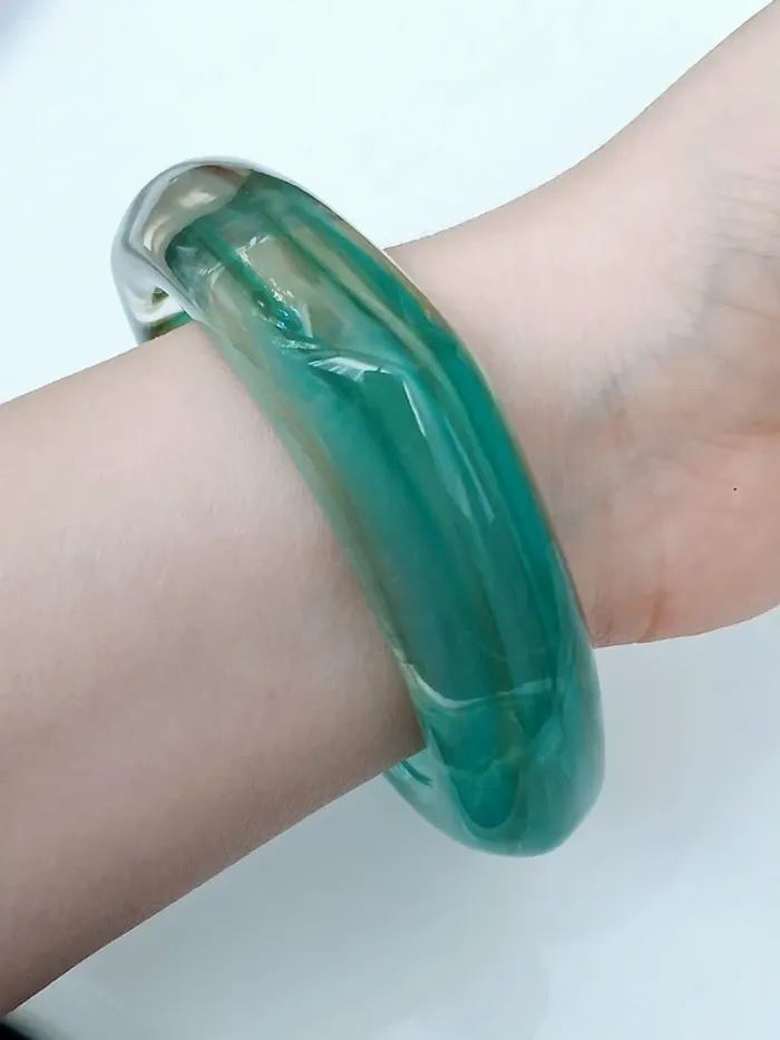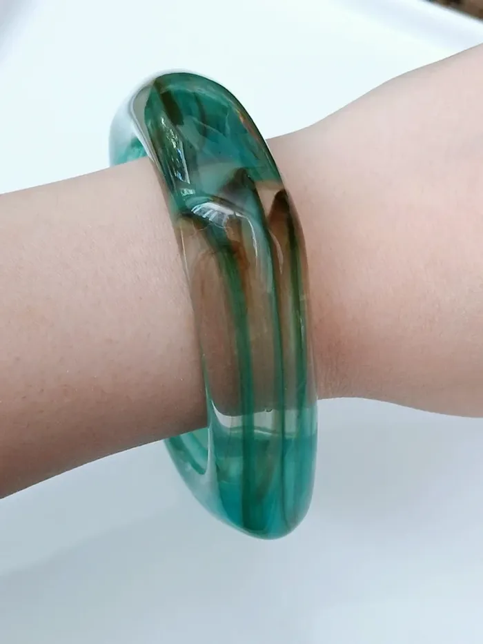 Bracelet résine vert marbré vintage forme carrée - photo numéro 4