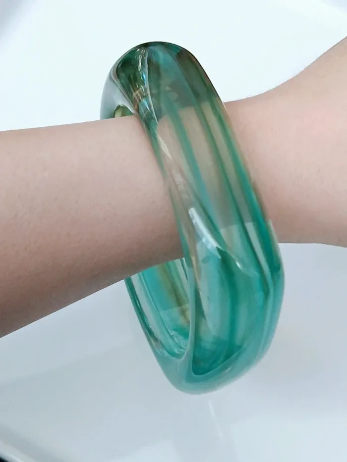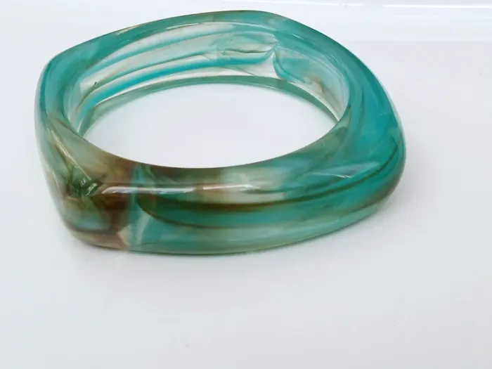 Bracelet résine vert marbré vintage forme carrée