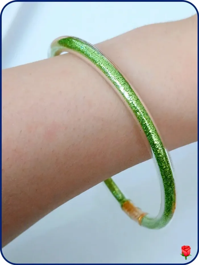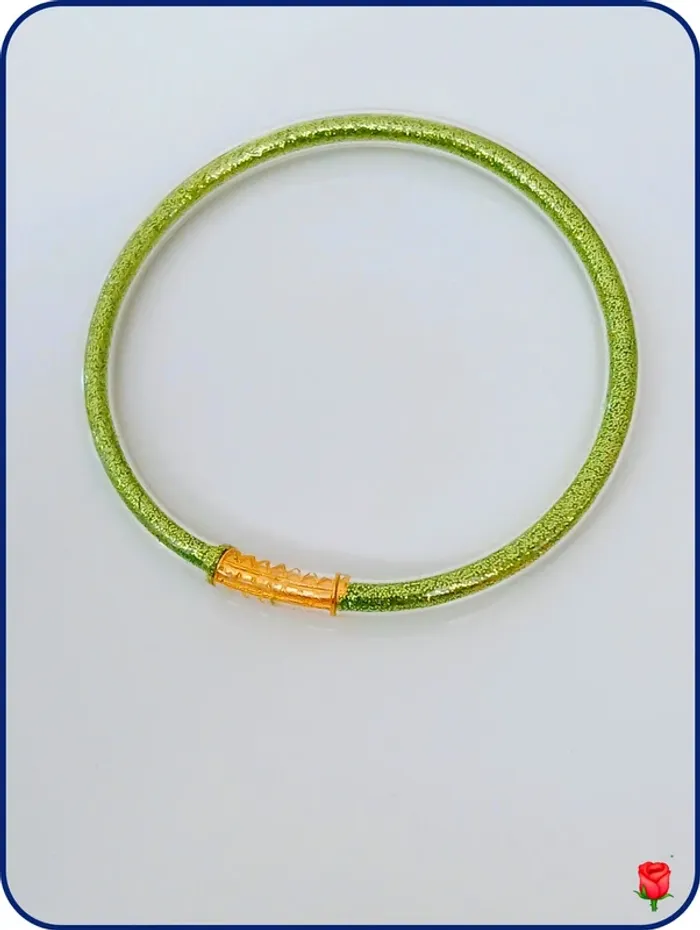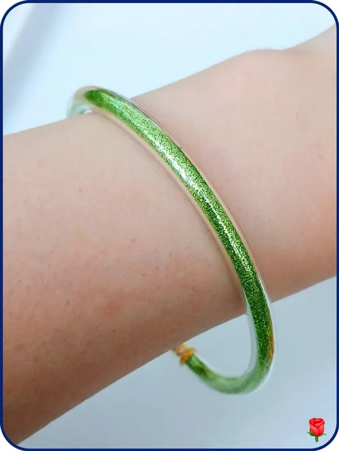 Bracelet jonc vert souple pailleté – style bracelet bouddhiste
