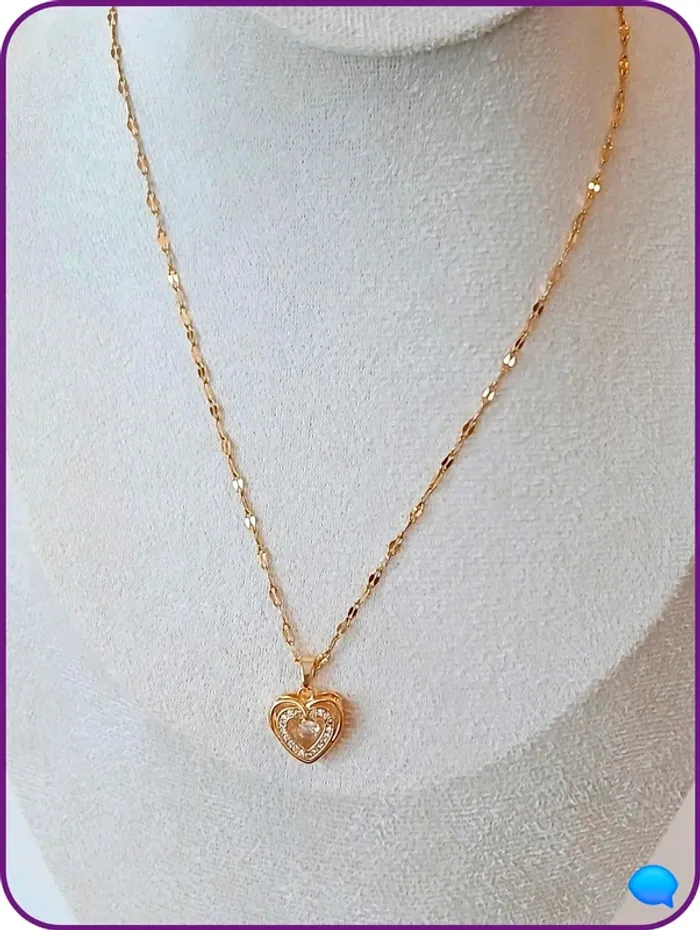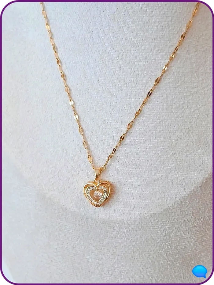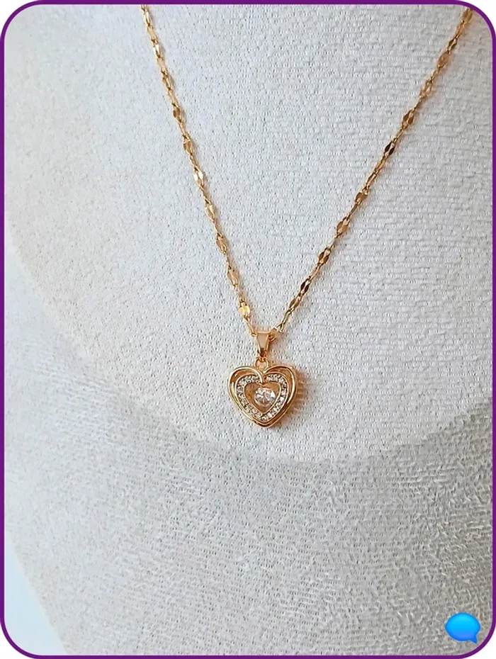 Collier doré à pendentif cœur avec strass , look féminin, romantique et très tendance.