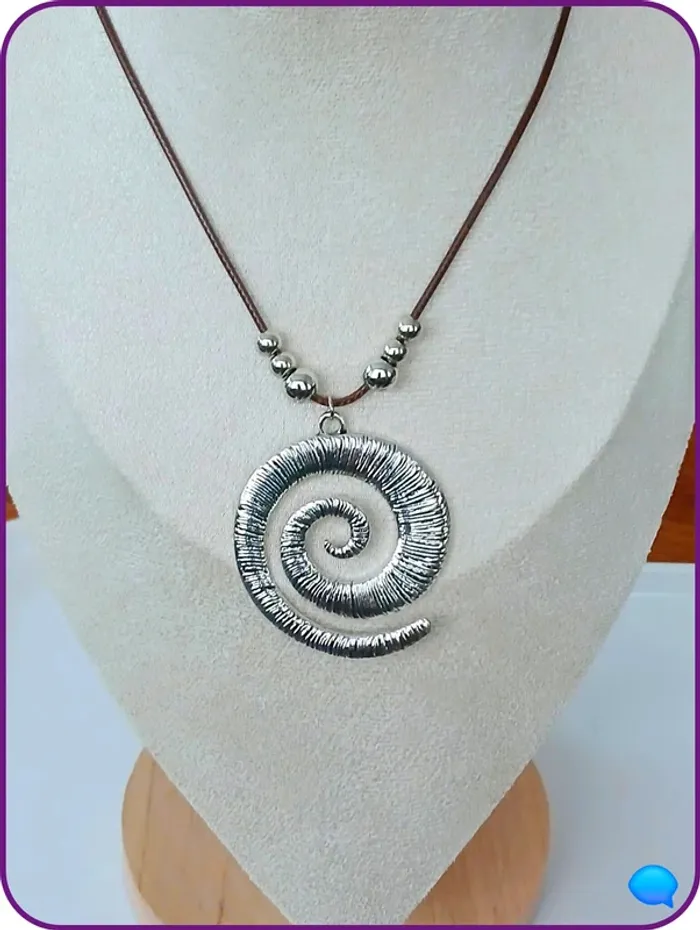 Collier spirale argentée style vintage bohème chic - photo numéro 1