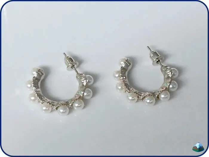 Boucles d’oreilles créoles argentées ,perles blanches – must-have mode