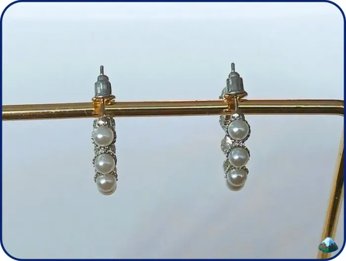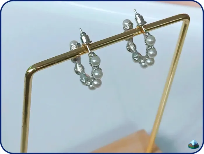Boucles d’oreilles créoles argentées ,perles blanches – must-have mode - photo numéro 4