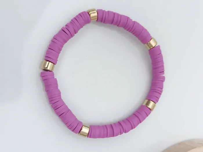 Bracelet perles Heishi lila et doré – Tendance bohème coloré été