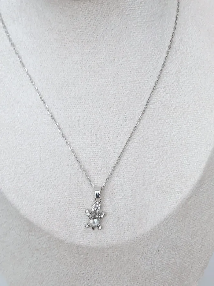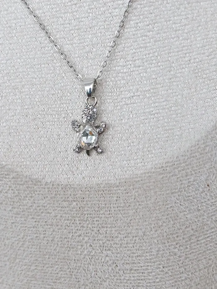 Collier pendentif tortue argenté avec strass brillants tendance chic été - photo numéro 1