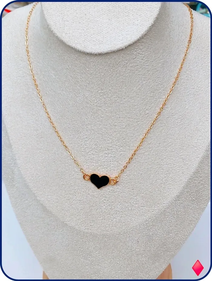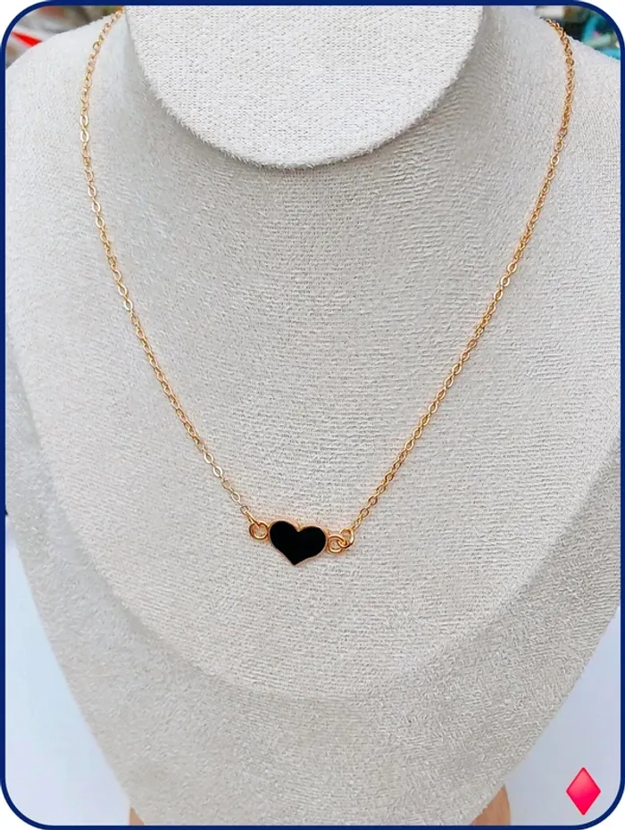 Collier doré fin avec cœur noir émaillé tendance romantique été