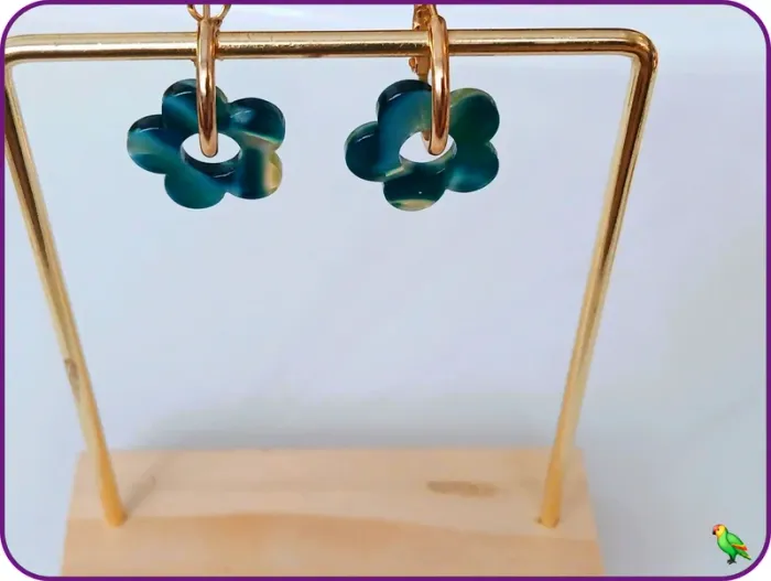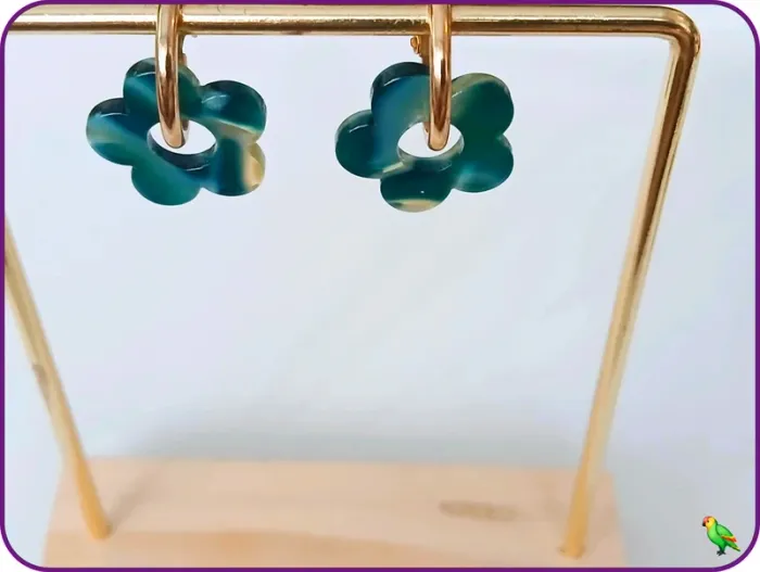 Boucles d’oreilles fleurs en résine – anneaux dorés