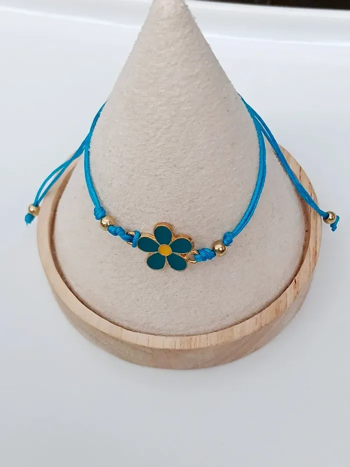 Bracelet fleur bleu sur cordon ajustable – look minimaliste - photo numéro 1