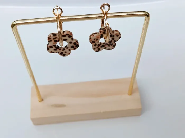 Boucles d’oreilles fleurs style léopard en résine – anneaux dorés - photo numéro 1