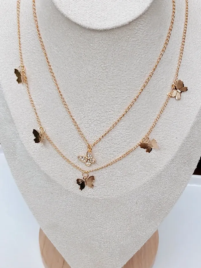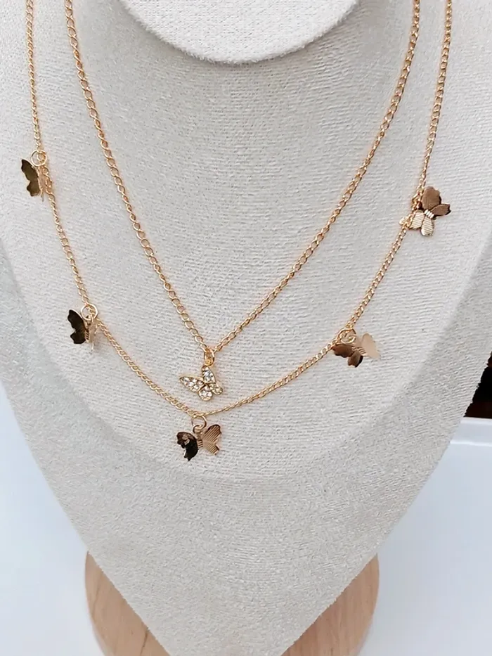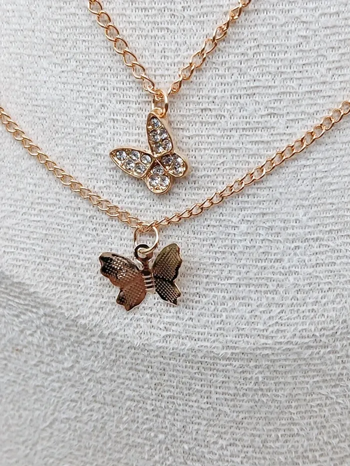 Lot de 2 colliers dorés papillons – chaîne fine & pendentif strass - photo numéro 2