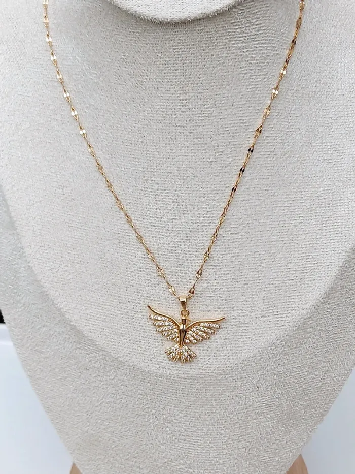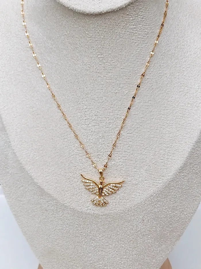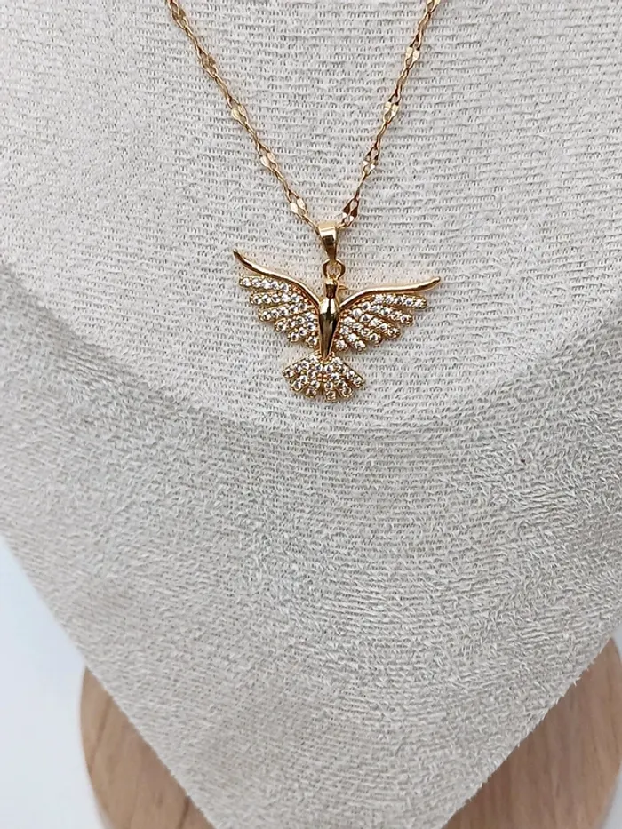 Collier doré fin avec pendentif oiseau strassé - photo numéro 1