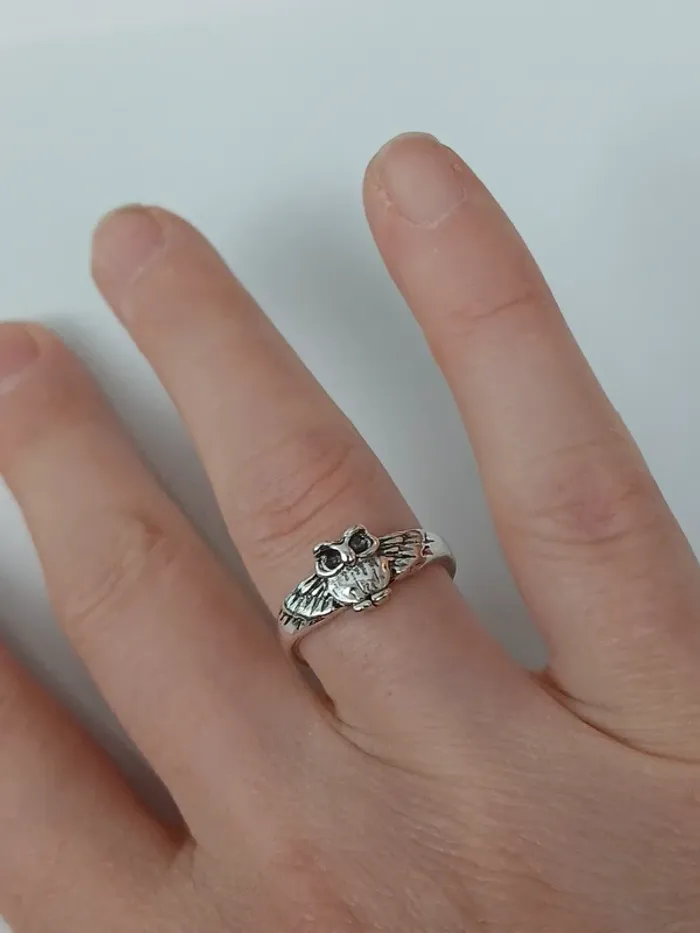 Bague hiboux argentée tendance en acier inoxydable - photo numéro 2