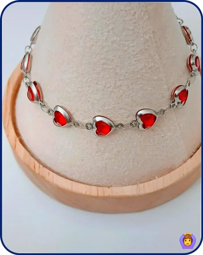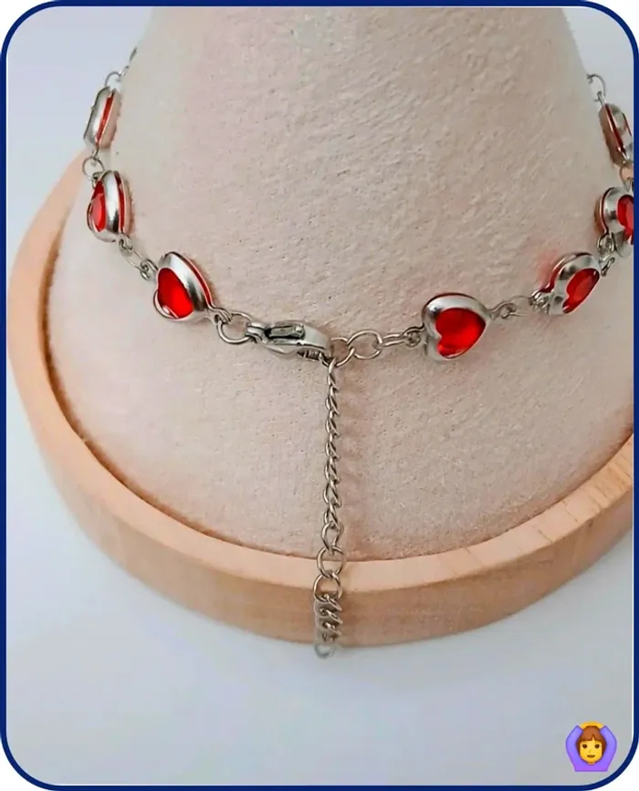 Bracelet argenté cœurs rouges – style Y2K tendance romantique - photo numéro 1