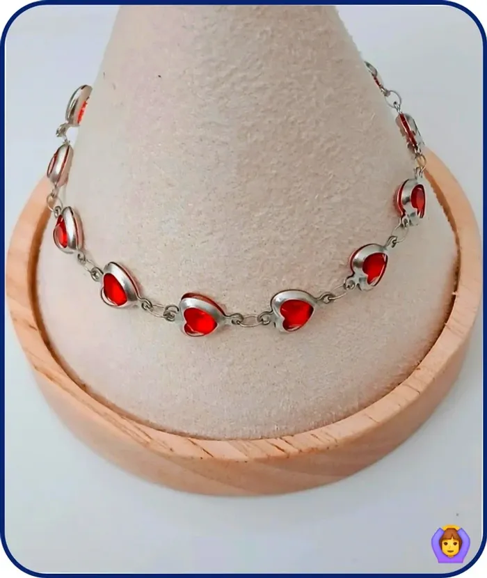 Bracelet argenté cœurs rouges – style Y2K tendance romantique - photo numéro 4