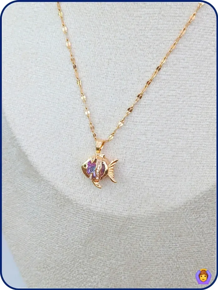 Collier doré poisson coloré – style Zag / Lou.Yetu
