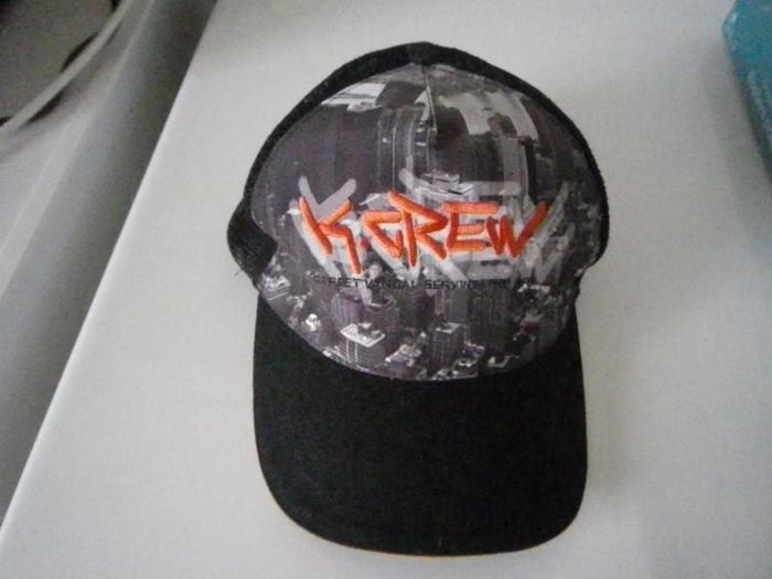 Faite de polyester. Tour de tête 55 cm. Languette réglable à l'arrière