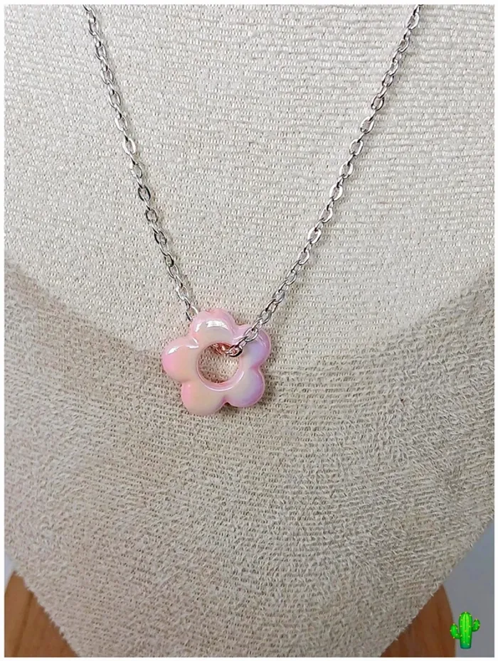 Collier fin avec pendentif fleur rose en résine style moderne