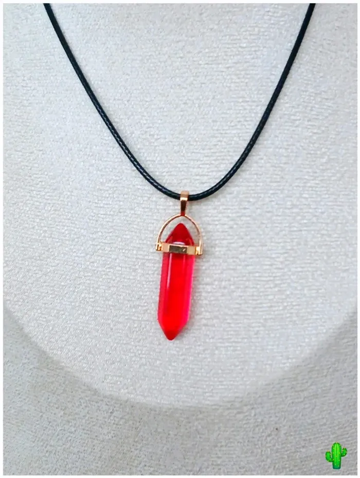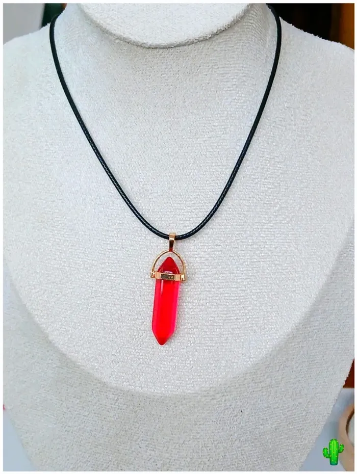 Collier pendentif rouge hexagonale sur cordon tendance - photo numéro 3