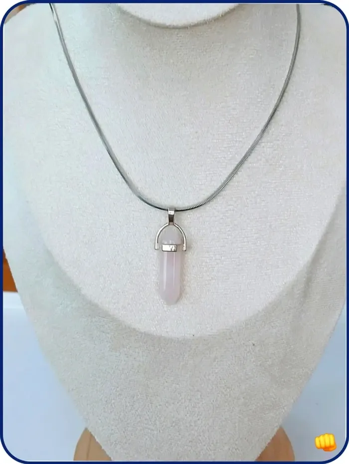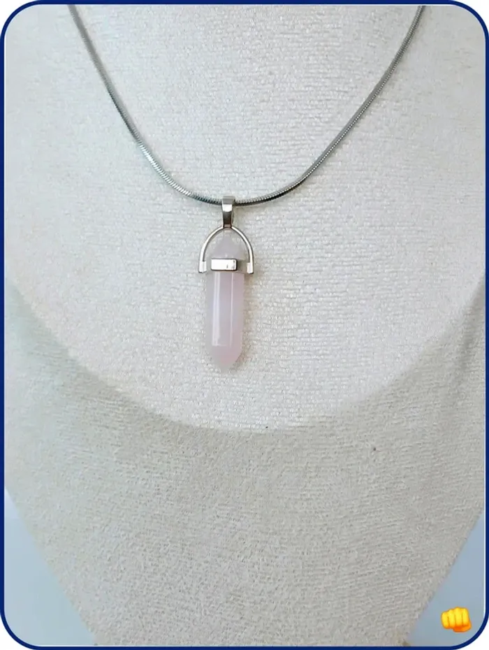 Collier pierre  rose – acier inoxydable vintage tendance bien-être