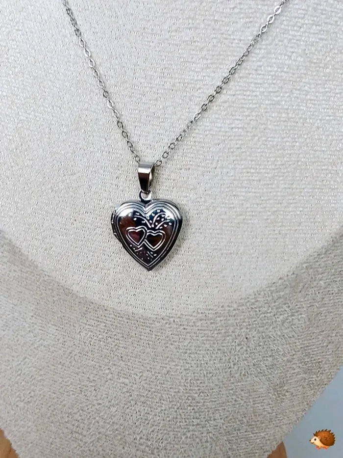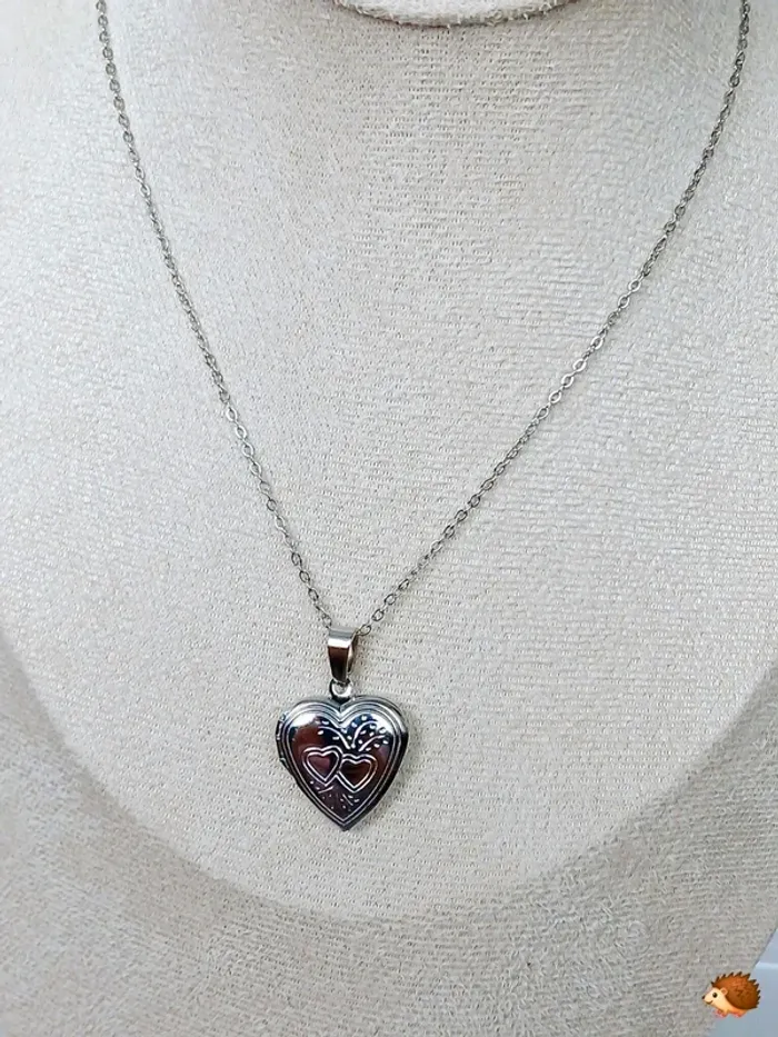 Collier fin avec médaillon cœur gravé style vintage chic - photo numéro 1