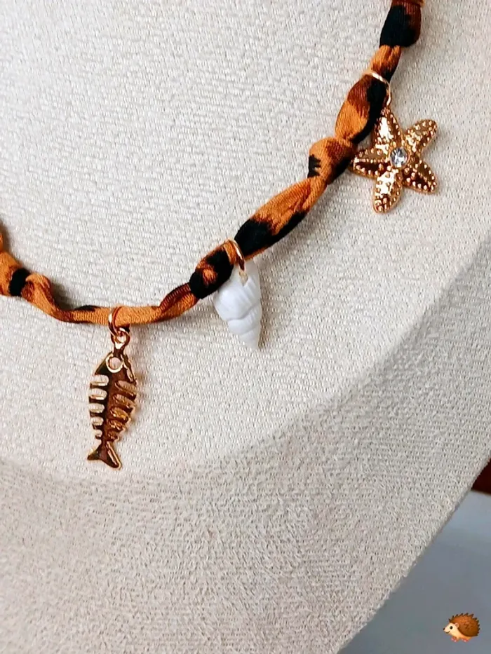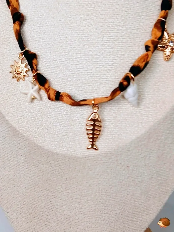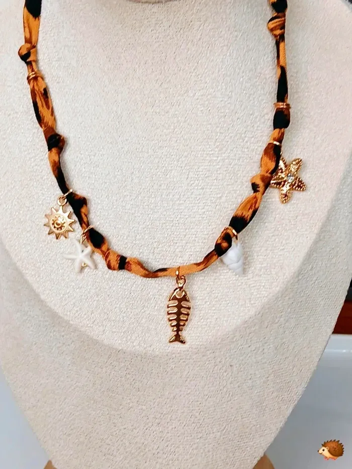 Collier bohème avec pendentifs marins et ruban léopard