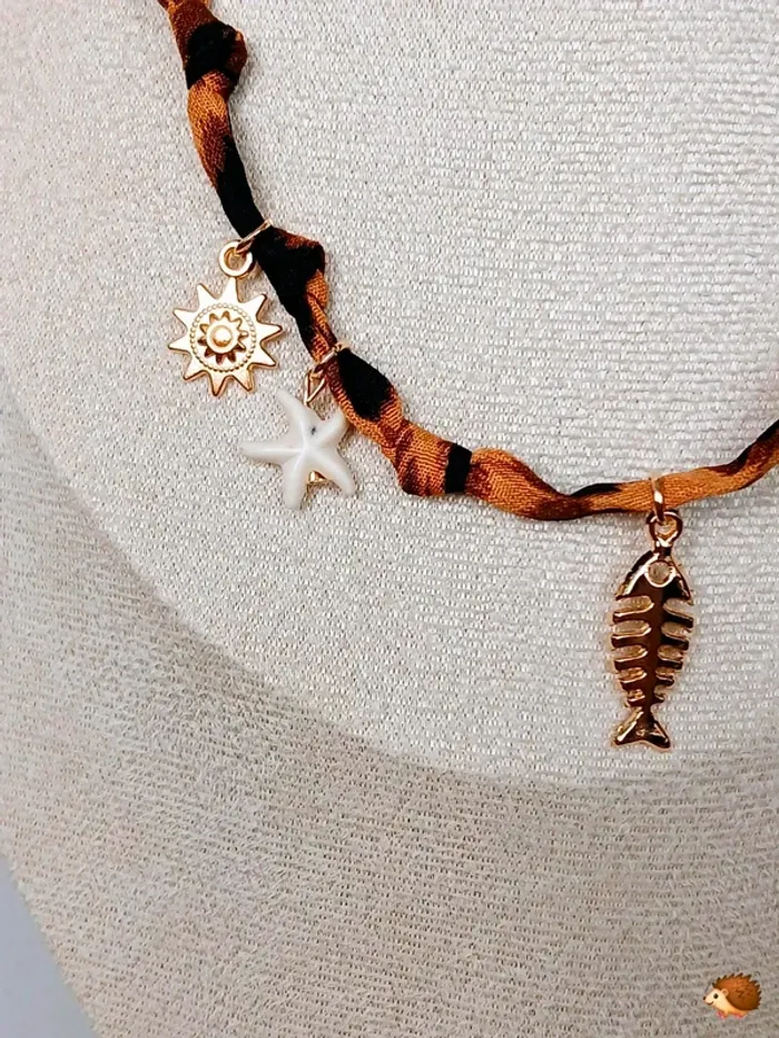 Collier bohème avec pendentifs marins et ruban léopard - photo numéro 1
