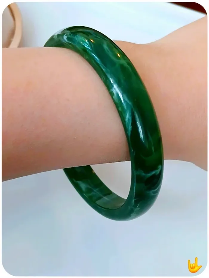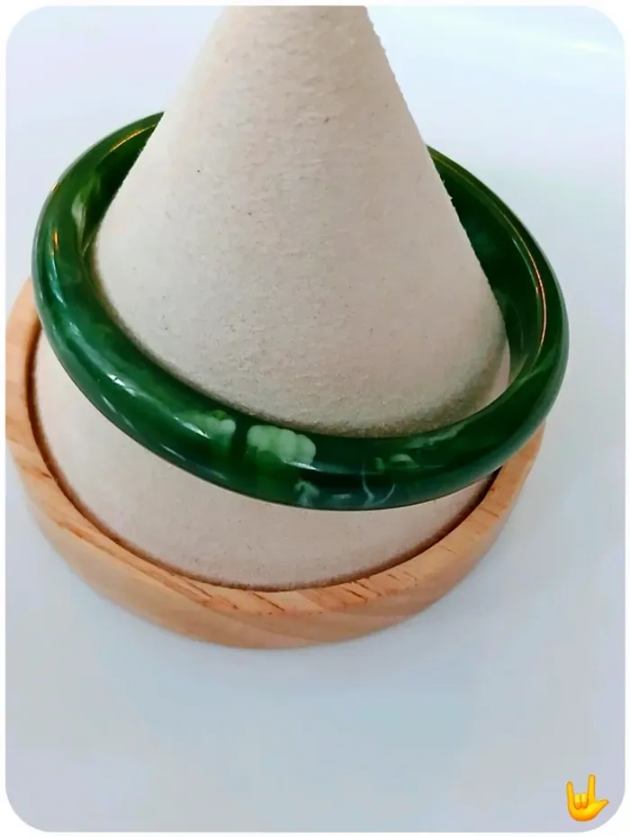 Bracelet jonc vert marbré style bouddhiste – look minimaliste et tendance