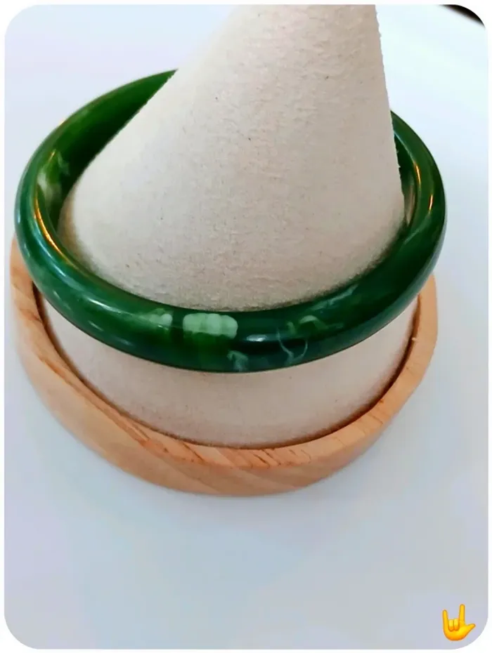 Bracelet jonc vert marbré style bouddhiste – look minimaliste et tendance - photo numéro 1
