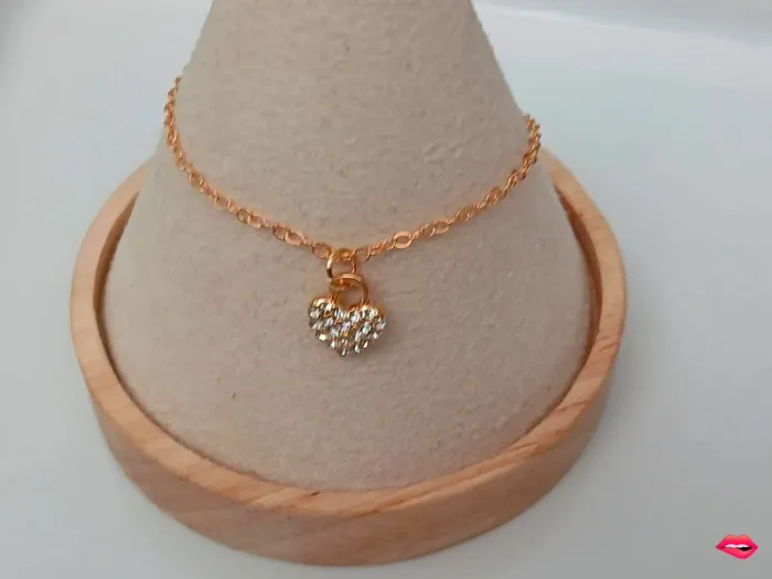 Bracelet doré fin & pendentif cœur strass - photo numéro 1