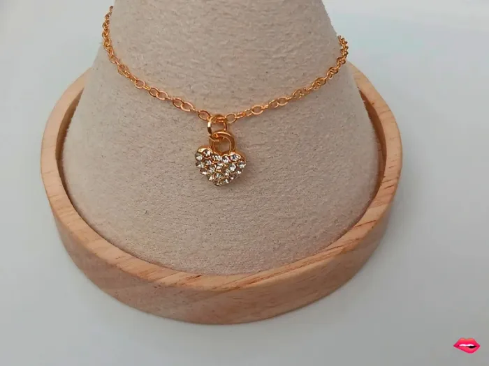 Bracelet doré fin & pendentif cœur strass - photo numéro 2