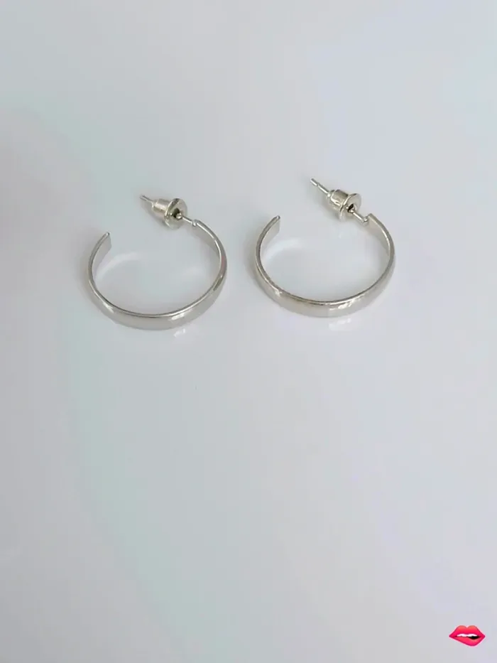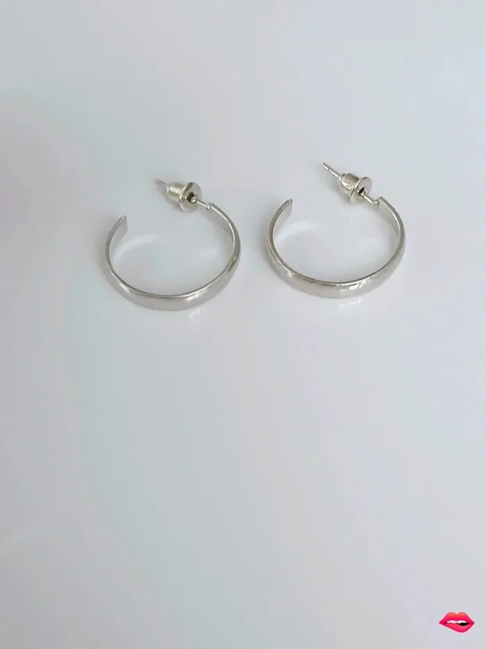 Boucles d’oreilles créoles épaisses argentées brillantes – style minimal chic - photo numéro 1