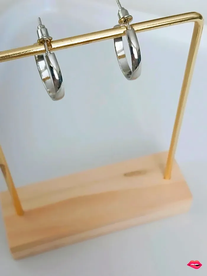 Boucles d’oreilles créoles épaisses argentées brillantes – style minimal chic - photo numéro 3