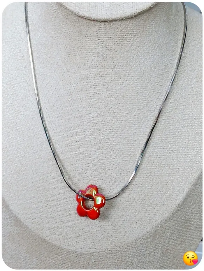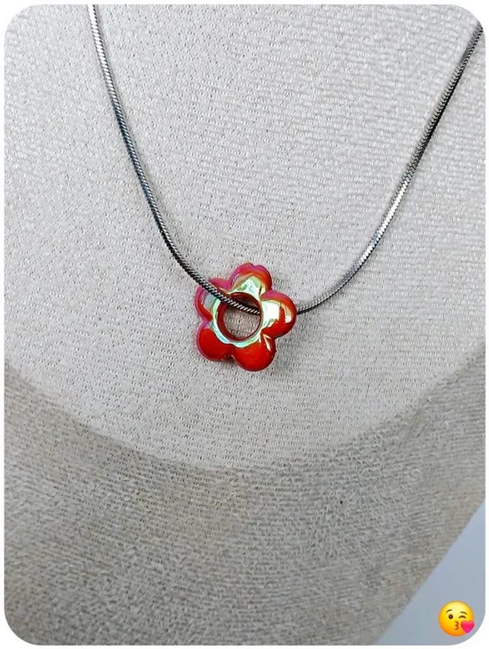 Collier chaîne fine & pendentif fleur nacré irisé - photo numéro 1