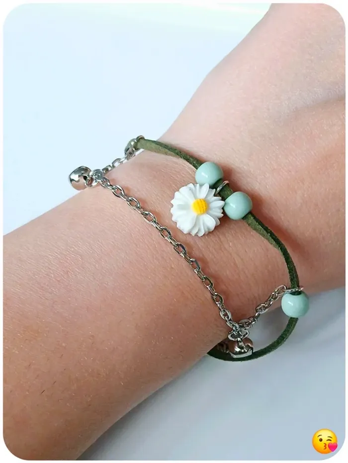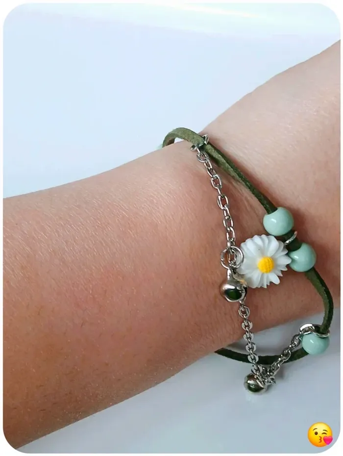 🌸#loulouss38braceletscordon Bracelet fantaisie à double rang : un cordon vert doux agrémenté d’une jolie marguerite et de perles vert d’eau, associé à une fine chaîne argentée. Jamais porté. 🌸#loulouss38bijoux #bracelet #jonc #braceletfleur #boheme #bijouxfantaisie #accessoires #perlesvertes #braceletvert #braceletdaisy #braceletmarguerite #bijouprintemps #braceletboho #breloque #braceletfeuille #fleurblanche #bijoufleur #bijouchic #braceletfemme #cadeaufemme #tendancebijoux #bijouxdujour #braceletdujour #braceletpoétique #accessoirefemme #idéeaccessoire #bijouxboheme #braceletpastel #braceletété #jewelry #flowerbracelet #bohostyle #bohojewelry #greenbeads #bohobracelet #leafcharm #daisycharm #pasteljewelry #handmadejewelry #giftforher #braceletstack #braceletideas #minimaljewelry #bijoudelété #trendyaccessory #womenstyle #braceletinspo #resinajewelry #vintedbijoux #pulsera #pulseraflor #joyas #joyasmujer #pulseraverde #joyasboho #pulserabonita #hechoamano #bisuteria #accesorios #estiloboho #pulserasdeluz #regaloparallevar #bracciale #braccialefiori #gioielli #accessorimoda #gioielliboho #braccialeverde #gioiellidonna #braccialemoda #estatemoda #resinagioielli #fioribracciale #armband #schmuck #frauenarmband #bohoschmuck #kettearmband #schmuckidee #armreif #schmuckdesign #blattanhänger #armbandsommer #handgemacht #accessoiresfemme #accessoirechic #braceletmignon #braceletdelicat #looknature #braceletprintanier #greenbracelet #bijouxtendance #daisydetail #braceletbelle #naturelovers #bijouxcreateur #pastelaccessory #bijouxféminin #greeninspo #fleurbijou #braceletplante #moodnature #bijouprintanier #braceletcharme #braceletunique #bijouxoriginaux #margueritelover #braceletadorable #vintedinspiration