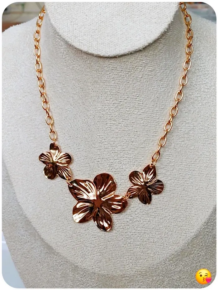 Collier doré fleurs relief - style Lou.Yetu tendance bohème chic - photo numéro 1