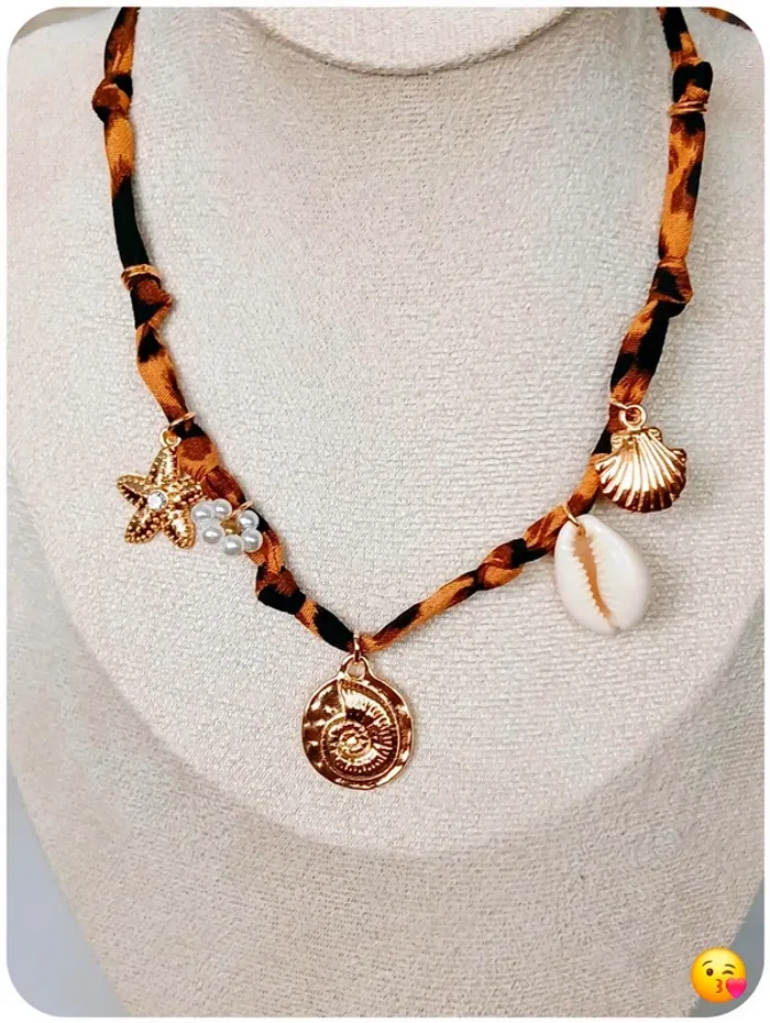 Collier ruban tressé et pendentifs marins dorés – style bohème chic - photo numéro 1