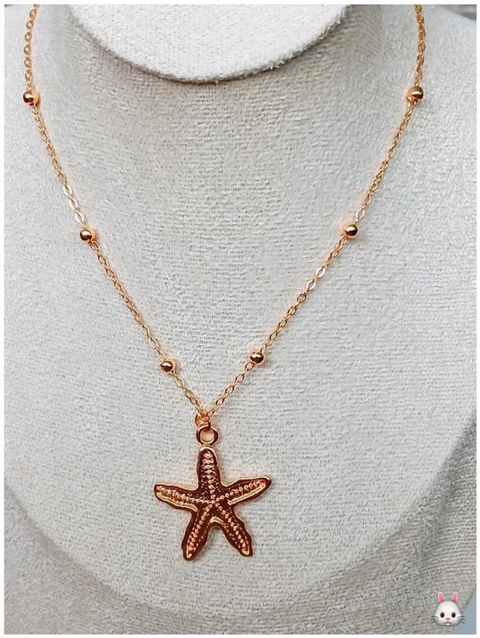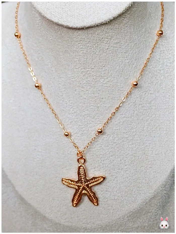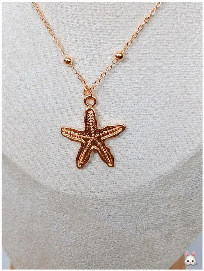 Collier doré pendentif étoile de mer – chaîne fine à billes - photo numéro 1