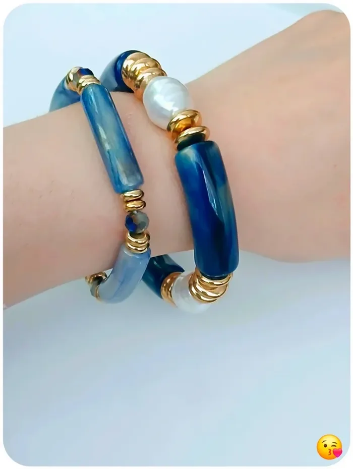 Lot 2 bracelets élastiques bleu et doré – style chic & tendance