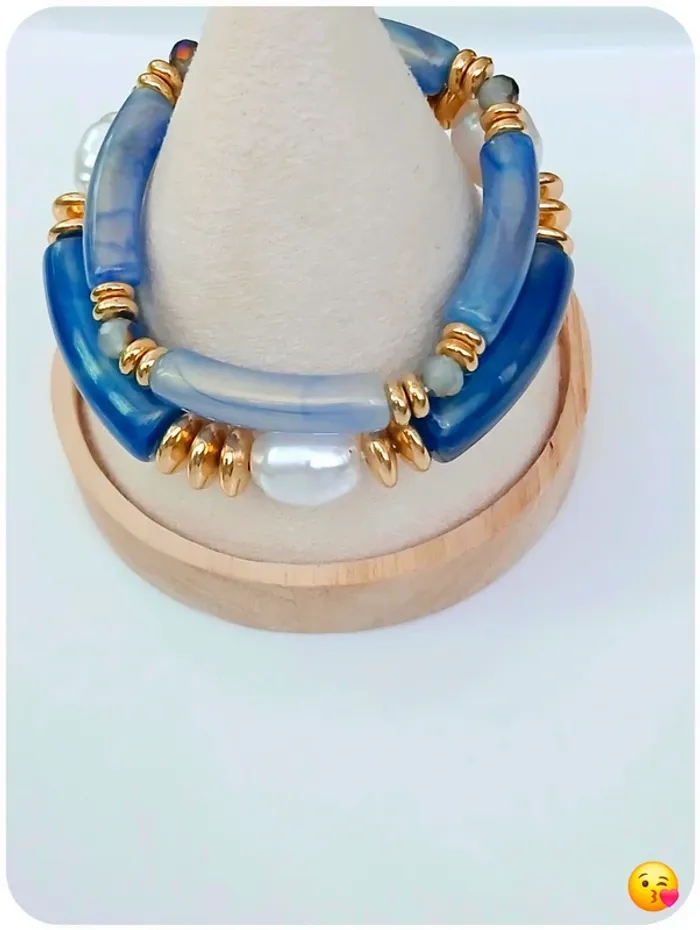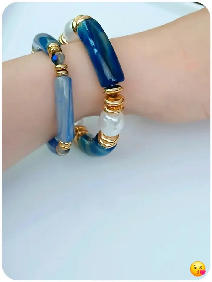 Lot 2 bracelets élastiques bleu et doré – style chic & tendance - photo numéro 2